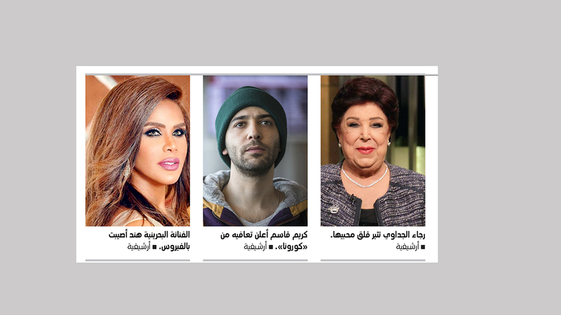 تتوالى الأخبار عن تماثل العديد من نجوم الفن في العالم العربي من الإصابة المباشرة بالفيروس، وأبرزهم الممثلة السورية هناء نصور التي أعلنت عن شفائها من الفيروس بعد أسبوعين من العلاج.