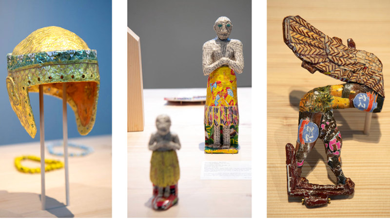 - الفنان يعيد استكشاف قطع أثرية دمرت ونهبت من العراق، من خلال إعادة بنائها.