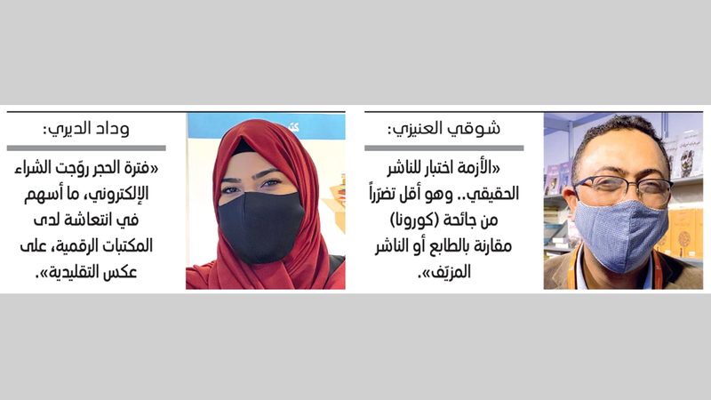 برؤية أخرى، ينظر صاحب دار مسكيلياني للنشر بتونس، شوقي العنيزي، إلى الجائحة «فهي اختبار ليس للإنسان الذي اعتاد ضجيج المدن وابتعد عن خلوات الذات فحسب، بل للناشر الحقيقي الذي ستحثه الأزمة على التفكير في أدوات توزيع جديدة غير تقليدية، مثل المعارض الافتراضية والبيع الإلكتروني الذي يمكن أن يقدم حلولاً ناجعة بشرط أن يتوافر مبدأ حماية حقوق الملكية الفكرية التي يعانيها الناشر والمؤلف، على حد سواء، في العالم العربي».