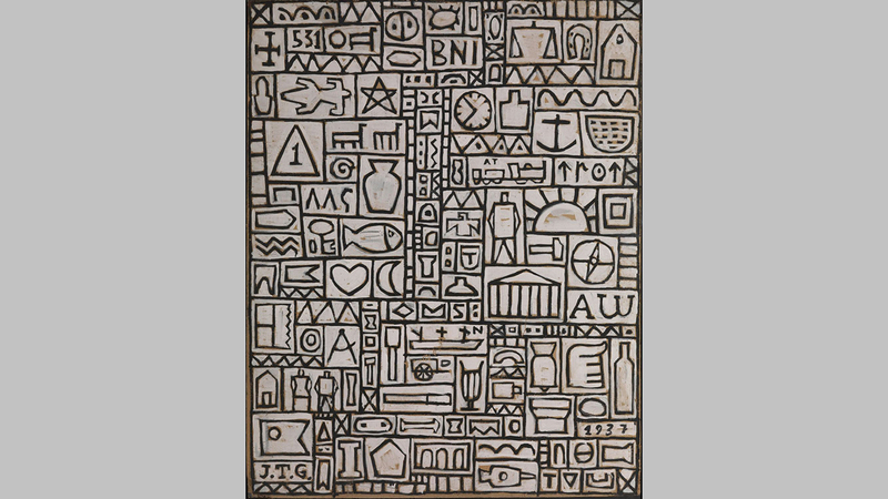 يضم المعرض أربعة أقسام: يركز القسم الأول منها على «الرسوم التصويرية»، وهي صور رمزية تمثل كلمات وأفكاراً في الحضارات القديمة في بلاد الرافدين ومصر، شكلت مصدر إلهام لفناني الفن التجريدي.