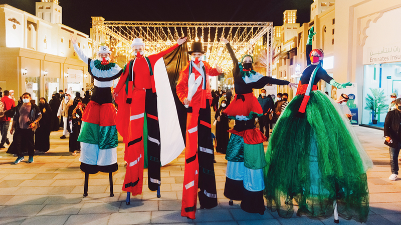 واستمتع الزوار بآلاف الفعاليات الفنية والاستعراضية والفلكلورية المتنوعة، التي قدمتها عشرات الفرق المحلية والخليجية والعربية والعالمية، وبعروض الألعاب النارية الضخمة، التي نظمت احتفالاً باليوم الوطني الـ49، واحتفالات ليلة رأس السنة وألعابها النارية، التي حطمت رقمين قياسيين عالميين، وكذلك عروض نافورة الإمارات، ومسابقات منطقة «الوثبة كاستم شو»، ومئات الفعاليات التي خصصت للأطفال ضمن مدينة الملاهي العالمية ومنطقة عالم الأطفال «كيدز نيشن»، إضافة إلى العروض المسرحية والورش التفاعلية المخصصة للأطفال ومناطق الألعاب، والمسابقات والسحوبات والهدايا.