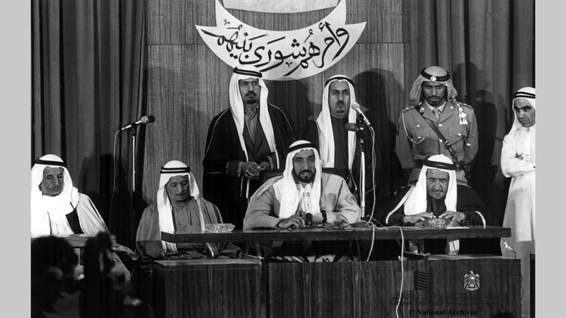 صفحة أسبوعية تقدمها «الإمارات اليوم»، بالتعاون مع «الأرشيف الوطني»، التابع لوزارة شؤون الرئاسة، بهدف التعريف بشكل الحياة في الإمارات قبل الاتحاد، وخلال بداياته الأولى، والجهد الكبير الذي بذله الآباء المؤسسون للدولة من أجل قيامها، وربطها بما يحققه قادة الإمارات، اليوم، وأبناؤها من إنجازات شهد لها العالم.