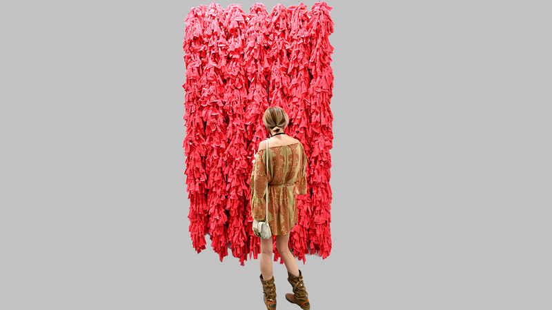 يقدم المعرض عملاً للفنان الراحل حسن شريف، الذي يتكون من مجموعة من المناشف التي تم ربطها بشكل متسلسل وطولي، لتبدو كما لو أنها شلال زهري اللون ومتناسق المظر. هذا العمل يجسد فكر الفنان المفاهيمي الراحل، وقدرته على تحويل المواد المهملة إلى أعمال فنية مبنية على مبدأ إعادة صياغة المواد وخلق أبعاد جديدة لها. يحمل هذا العمل تجربة شريف مع الأعمال التركيبية، ورؤيته إلى كل ما نستهلكه في حياتنا اليومية، وإلى مفهوم الأشياء الصغيرة التي يمكن ببساطة ان تتحول ويتغير استخدامها، فهو يعيد قولبة المواد من منظور جديد.