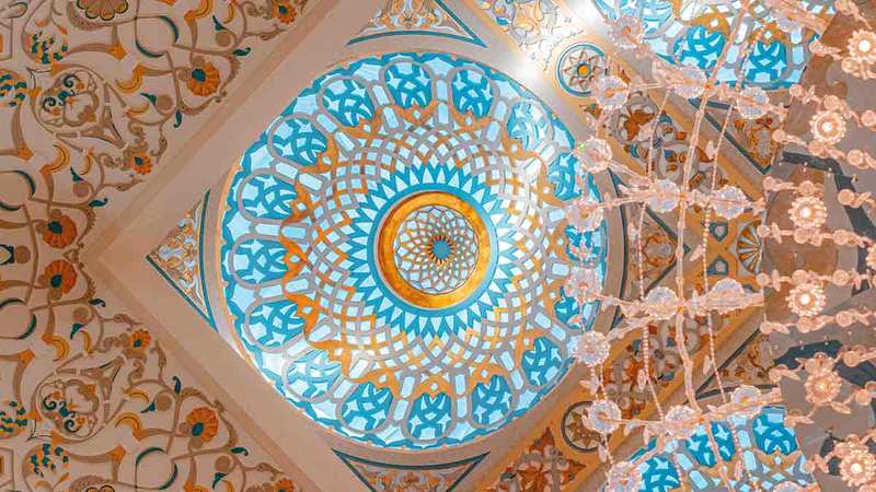 يبرز جمال القاعة الكبرى في القبة المركزية الضخمة، التي يبلغ قطرها 37 متراً، وتعد القباب من أبرز ملامح فنون العمارة العربية، إذ يعود استخدام هذه الهياكل الهندسية الفريدة إلى عصر ما قبل الإسلام.