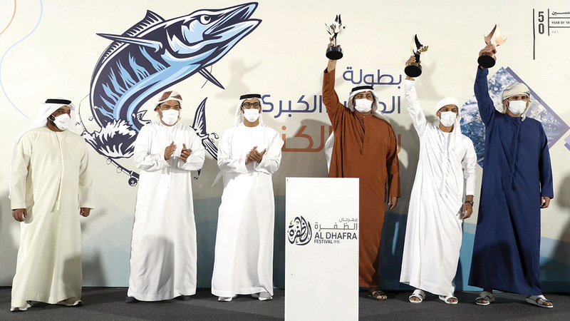 خلال تتويج الفائزين في بطولة الظفرة الكبرى لصيد الكنعد للرجال والنساء بدورتها الثانية. من المصدر