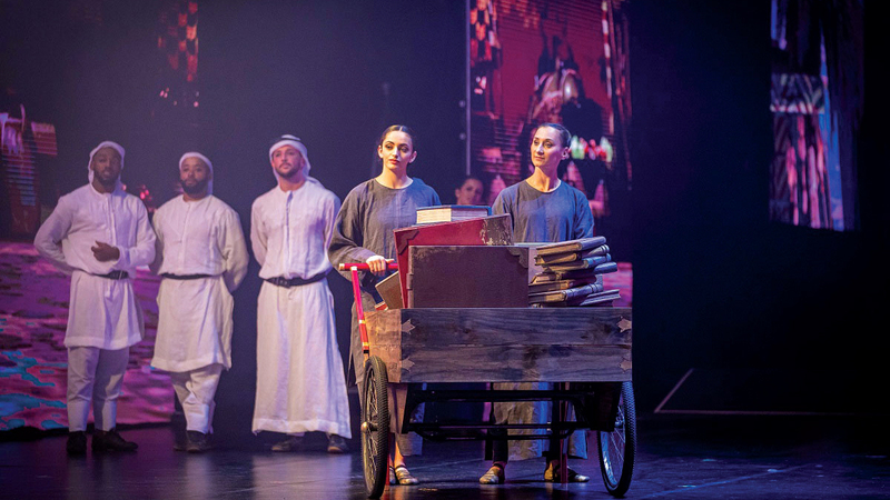 ورسمت مشاهد العرض الذي يُقام على مسرح المجاز، ويستمر أيام 28 و29 من يناير الجاري، لوحة فنية عن الجذور المعرفية والثقافية للشارقة، فجسّد قصة صاحب السمو حاكم الشارقة، حين رهن خنجره المذهَّب وهو لم يتجاوز الـ12 من عمره، ليشتري بثمنه كتباً، كما أضاء على حجم المنجزات والصروح والمشروعات الثقافية التي قادتها الشارقة للنهوض بالوعي والانفتاح على معارف وفنون العالم.
