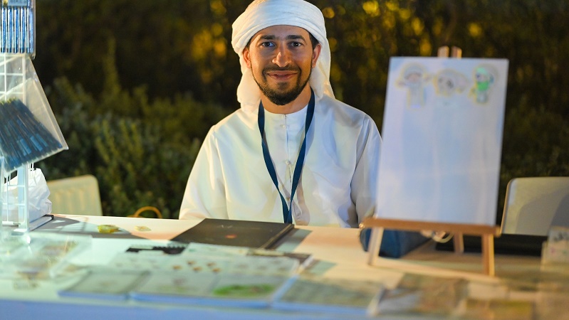وشاركت علياء البادي، بعرض رسوماتها، وكتابها الصامت الذي قدمت فيه قصة متكاملة من خلال الرسومات فقط. وأكدت أن القصة تعبر عن دمية مصنوعة من شجر الزيتون، وهي تمشي في الغابة وتساعد الحيوانات وتمنح كل حيوان قطعة من جسدها حتى تصل في الختام إلى فقدان كل أجزاء جسمها وتموت. ونوهت بأن القارئ يتمكن من قراءة القصة بدون وجود النص، لأن الرسومات قادرة على إيصال الفكرة ولاسيما لأن ابتكار الشخصية صمم بشكل يوضح الأحداث، ولفتت إلى أن الشخصيات التي تبتكرها قريبة منها، وتستغرق الكثير من الوقت كي تنجزها ولهذا تصبح قريبة منها إلى حد كبير.