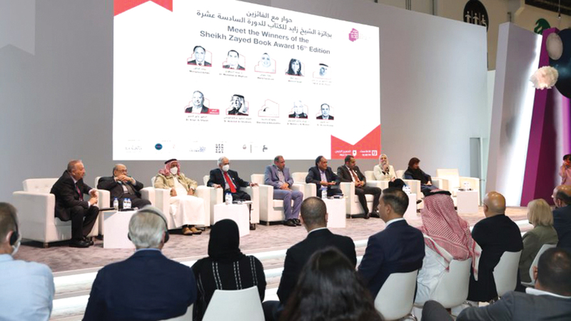 «كتابي الفائز ينطلق من مقهى ريش الشهير، والذي اشتهر بكونه ملتقى للمبدعين». جلسة المكرمين في الدورة الـ16 نظمت ضمن فعاليات معرض أبوظبي للكتاب.