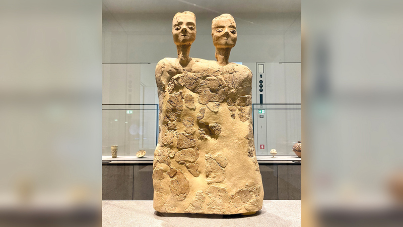 تمثال برأسين من موقع عين غزال الأثري الأردني. من المصدر