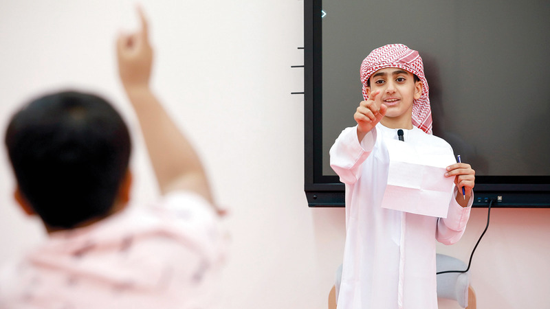طفل مشارك في البرنامج يبدع في التقديم أمام زملائه. من المصدر
