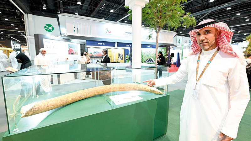 بينما اجتذب جناح هيئة تطوير محمية الإمام تركي بن عبدالله الملكية، والتي تعد ثاني أكبر محمية في السعودية، وتقع في الجزء الشمالي الشرقي من المملكة، وتبلغ مساحتها 91 ألفاً و500 كيلومتر مربع، اهتمام زوار «أبوظبي للصيد» بما يعرضه من قطع أثرية كشف عنها بمشاركة هيئة المساحة الجيولوجية، منها هيكل عظمي شبه كامل يعود لفيل ضخم القوام تم اكتشافه وتجميعه، ويعود لحيوان الباليولوكسودون ريكي أو إيلفاس ريكي، وهو نوع منقرض من الفيلة العملاقة عاشت في شبه الجزيرة العربية قبل نحو 500 ألف عام على أطراف بحيرات المياه العذبة التي كانت تغطي أجزاء واسعة من السعودية، خصوصاً المنطقة الشمالية والشمالية الغربية من المملكة. ويزيد ارتفاع هذا النوع من الفيلة على أربعة أمتار وتتميز بجبهة منتفخة ومرتفعة وأسنان طويلة مركبة من صفائح متلاحمة ذات سطح طاحن متعرج.