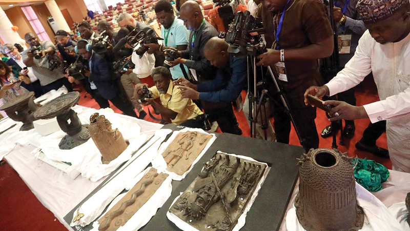 وتسلّم مسؤولون نيجيريون ست قطع، من بينها لوحتان برونزيتان، من القصر الملكي في مدينة بنين، وهي جزء من آلاف اللوحات المعدنية والمنحوتات والأشياء من القرن السادس عشر إلى الثامن عشر التي تم الترحيب بها باعتبارها بعضاً من أفضل الفنون الإفريقية التي نُهبت من مملكة بنين القديمة، وانتهى بها الأمر في المتاحف والمجموعات الفنية في جميع أرجاء العالم. وسابقاً أعادت ألمانيا 20 قطعة أثرية منهوبة إلى نيجيريا في 20 ديسمبر 2022، أي بعد أكثر من 100 عام على سرقتها أثناء نهب القوات الاستعمارية البريطانية لمملكة قديمة.