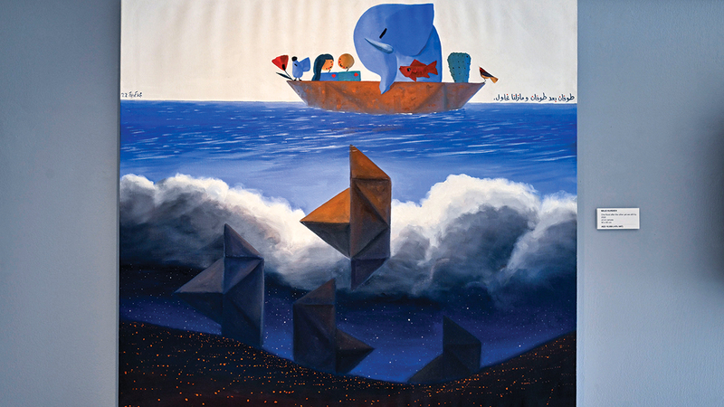 أما الكائنات في اللوحة، فأشار إلى أنها تتطور معه باستمرار، وكل تطور في اللوحة يعني تطور الكائنات، فالقصة والأحداث التي تأخذ منحى جديد تضيف إلى الشخصيات، أو حتى تقوده الى حذف بعضها، وباتت الشخصيات البصمة والهوية، ولكن التقنيات الخاصة بتقديمها تتبدل مع الوقت باستمرار.