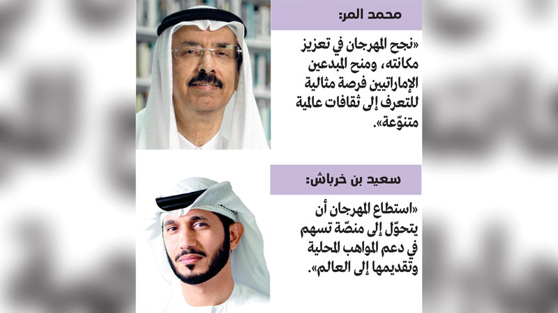 وقال رئيس مجلس إدارة مؤسسة مكتبة محمد بن راشد آل مكتوم، محمد أحمد المر، «إن مهرجان طيران الإمارات للآداب، تتقاطع فعالياته الثقافية والأدبية مع رؤيتنا واستراتيجيتنا في مكتبة محمد بن راشد، حيث يسهم في ترسيخ قاعدة الإبداع بشكل منهجي ومدروس، ويسهم في الارتقاء بالمشهد والحراك الأدبي والفكري على الصعيدين المحلي والإقليمي»، مضيفاً: «إنه نجح في تعزيز مكانته بين العديد من المهرجانات، ومنح المبدعين الإماراتيين في مجالات الأدب المختلفة، فرصة مثالية للتعرف إلى ثقافات عالمية متنوّعة، والوصول إلى خطوة إيجابية على طريق تعزيز البنية التحتية لقطاع التأليف والنشر».
