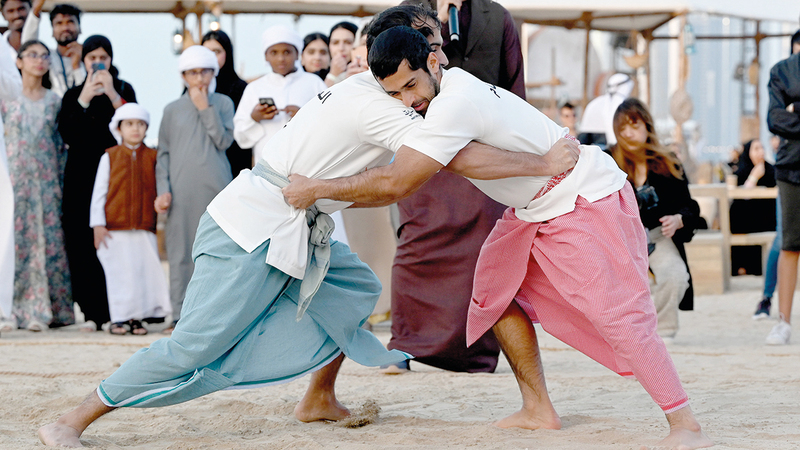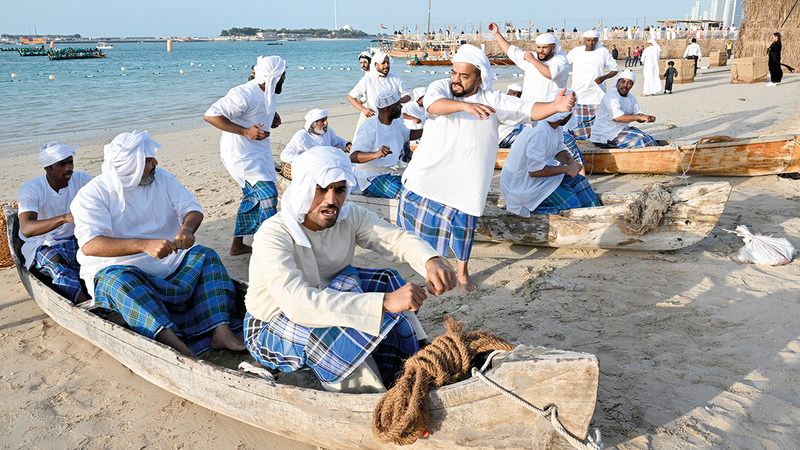 على أنغام الأهازيج التراثية، يستقبل مهرجان التراث البحري، الذي تتواصل فعاليات دورته الثانية حتى 26 فبراير الجاري، جمهوره من الكبار والصغار لينقلهم إلى منتصف القرن الماضي، بعد أن تحولت منطقة «ع البحر» على كورنيش أبوظبي، التي يُقام فيها المهرجان بتنظيم من دائرة الثقافة والسياحة بأبوظبي، قرية ساحلية تعكس أسلوب حياة سكان الإمارات قديماً، من خلال العديد من الفعاليات التفاعلية التي لا تكتفي بتعريف زوّار المهرجان بالتراث البحري فقط، ولكنها تتيح لهم أن يكونوا جزءاً منه، ليمارسوا الحرف التقليدية مثل صناعة المحامل الخشبية، وصناعة المالح وأدوات الصيد، إلى جانب تجربة فلق المحار والبحث عن حبات اللؤلؤ، وغير ذلك من المهن القديمة.