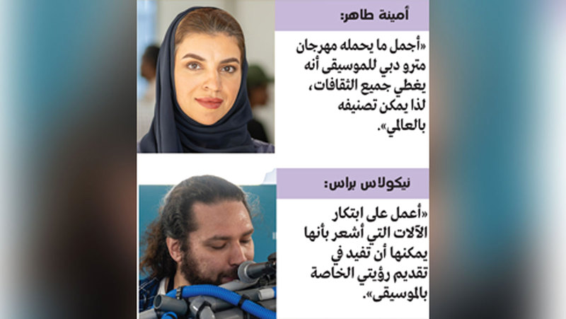 وأضافت: «أجمل ما يحمله مهرجان مترو دبي للموسيقى أنه يغطي جميع الثقافات، فهو ليس محلياً، بل يمكن تصنيفه بالعالمي، وخلال هذا العام تم دمج الطابع العام له مع عام الاستدامة، ولدينا آلات مصنوعة من مواد معاد تدويرها».