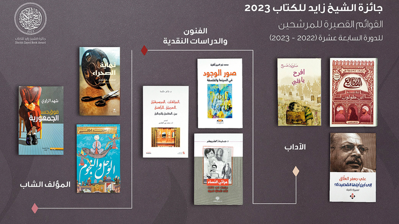أعلنت جائزة الشيخ زايد للكتاب، في مركز أبوظبي للغة العربية، التابع لدائرة الثقافة والسياحة – أبوظبي، اليوم، عن القوائم القصيرة في فروع «الآداب»، و«المؤلف الشاب» و «الفنون والدراسات النقدية» في دورتها الـ17، حيث ضمّت القائمة تسعة أعمال من مصر والعراق ولبنان والجزائر وتونس والمغرب.