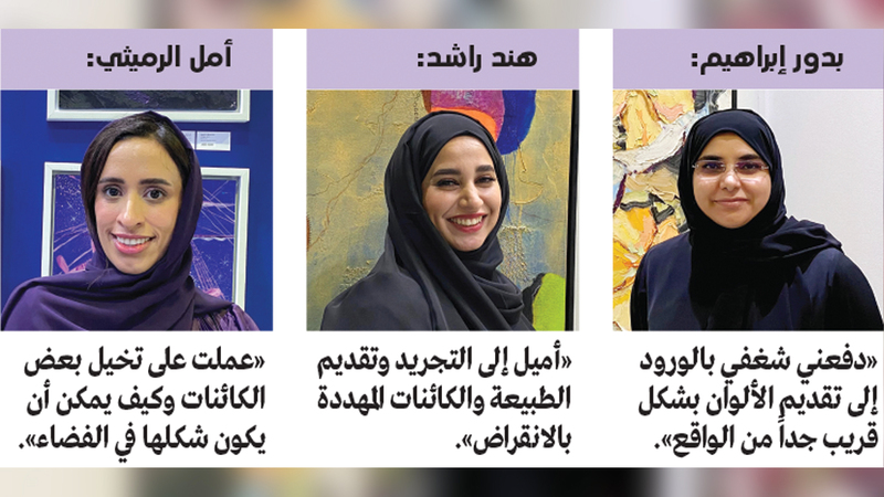 أما الفنانة الإماراتية أمل الرميثي، فتحدثت عن معرضها الفردي الذي قدمته في هذه الدورة، وقالت: «أعمل في مجال الإحصاء، وأرسم بعد دوامي، وقد بدأ شغفي بالرسم منذ الطفولة، وعلى الرغم من دراستي للرياضيات البعيدة عن الفن، فقد كان دائماً يجذبني عالم اللون».