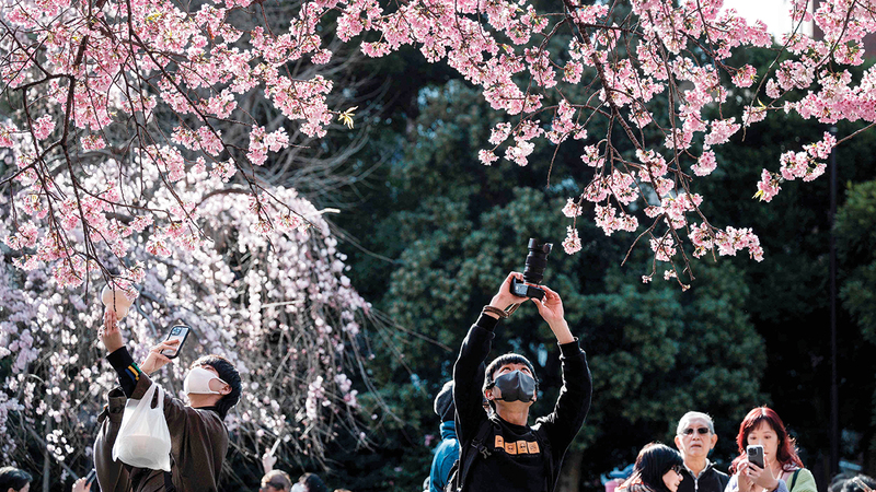 افتُتح رسمياً موسم تفتّح زهر الكرز في طوكيو، أمس، أي قبل 10 أيام من الموعد المعتاد، وهو منحى بات سائداً في السنوات الأخيرة بسبب تبعات الاحترار المناخي.