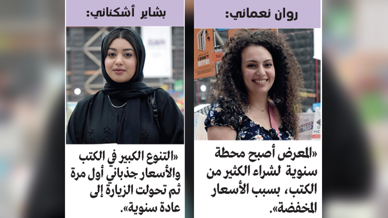 بينما رأت الإماراتية، بشاير خليل أشكناني، أن التنوع في الكتب والأسعار المخفضة هو الذي جذبها لزيارة المعرض للمرة الأولى، خصوصاً أنها من محبي القراءة، ولديها مكتبة كبيرة تريد رفدها بالمزيد من العناوين. وأشارت إلى أنه على الرغم من كون العناوين العربية تعد أقل من الإنجليزية، إلا أنها وجدت عناوين مميزة، وبأسعار مخفضة، موضحة أنها اختارت العديد من الروايات لنجيب محفوظ وغيره من الكتاب الذين يأخذون القراء إلى عوالم مختلفة. ونوهت أشكناني بانها لم تحب الكتب المسموعة، لأنها لا تحب الاستماع إلى الكتاب بإحساس القارئ، بل تفضل أن تقرأ بإحساسها الخاص.