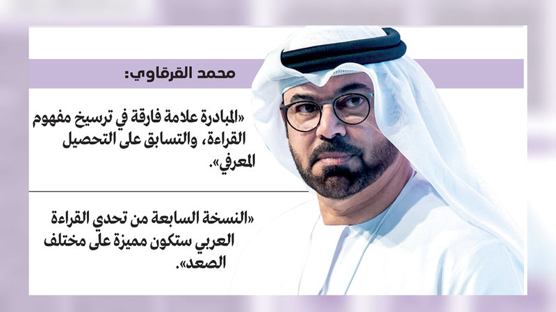 وقال وزير شؤون مجلس الوزراء الأمين العام لمؤسسة «مبادرات محمد بن راشد آل مكتوم العالمية»، محمد عبدالله القرقاوي: «إن مبادرة تحدي القراءة العربي، التي أطلقها صاحب السموّ الشيخ محمد بن راشد آل مكتوم، قبل سبعة أعوام، أصبحت علامة فارقة في ترسيخ مفهوم القراءة، والتسابق على التحصيل المعرفي لدى الطلاب والطالبات، وتحوّلت عبر هذه السنوات إلى محفز رئيس للتعمق في جماليات اللغة العربية وقدرتها على استيعاب علوم العصر».