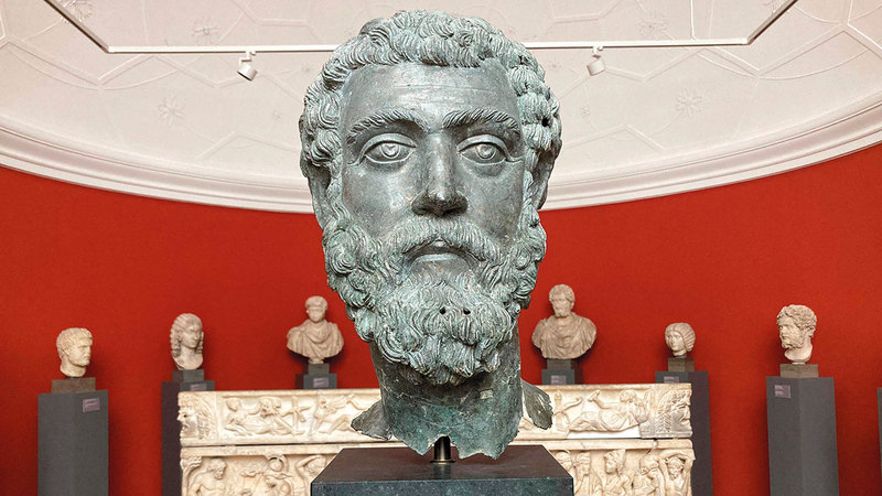 رأس تمثال الإمبراطور سيبتيموس سيفيروس معروض في أحد متاحف كوبنهاغن منذ أكثر من 50 سنة. أ.ف.ب
