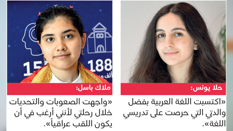 وتحدثت بطلة العراق ملاك محمد باسل، قائلة: «واجهت كل الصعوبات والتحديات خلال رحلتي في التحدي لأنني أرغب في أن يكون اللقب عراقياً في هذه الدورة، فقد تزامن التحدي مع الامتحانات المدرسية، وكذلك أن دراستي باللغة الإنجليزية، ولكني تخطيت كل الصعاب بمساندة العائلة». ونوهت بأنها قرأت أكثر من 270 كتاباً في مختلف المجالات، وكذلك في الأدب الروسي والإنجليزي والسويسري، معتبرة أن المبادرة أعادت مجد اللغة العربية، وجعلت عقول الطلاب أرفف مكتبات قادرة على مواجهة الجهل. أما بطلة موريتانيا صفية أحمد كوري، فكانت لها حكاية خاصة مع التحدي، حيث كانت تعيش في منطقة نائية لا تتوفر فيها الكهرباء أو الإنترنت، وكان من الصعب عليها المشاركة في التحدي خصوصاً أن مدرستها لم تكن ضمن المدارس المشاركة. ولفتت إلى أنها انتقلت إلى العاصمة في المرحلة الثانوية، وتمكنت من الفوز بلقب التحدي بعد أن قرأت 1000 كتاب، موضحة أن حبها للقراءة بدأ منذ الصغر، وقد أمضت 19 سنة من عمرها بين الكتب.