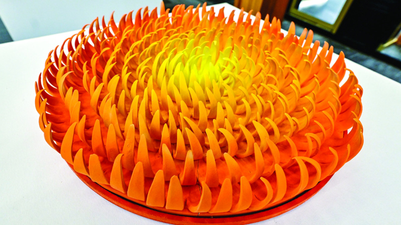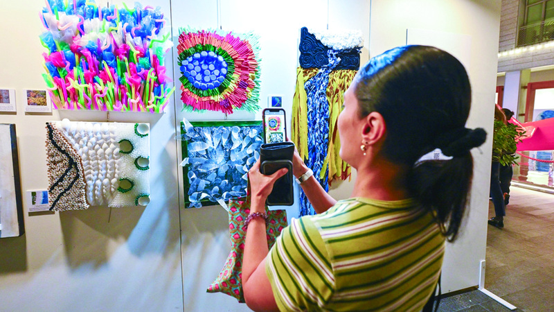 البلاستيك، والحديد، والورق، والطين، وغيرها من الوسائط المستدامة، شكلت المادة الأساسية لأغلبية الأعمال التي عرضت أول من أمس، ضمن النسخة الـ16 من «أمسيات ليالي الفن» التي نظمت في قرية البوابة بمركز دبي المالي العالمي، تحت شعار «تعابير فنية نحو تحقيق التغيير المستدام». وجسدت الأعمال المطروحة في هذه النسخة من «ليالي الفن»، والتي تنظم قبيل انعقاد «كوب 28»، مفاهيم الاستدامة والوعي البيئي ومحاولة التغيير الإيجابي من خلال الفن، إذ كانت تحاكي قضايا التغيير المناخي والأعباء التي يتركها الإنسان على البيئة.