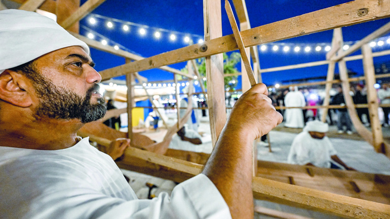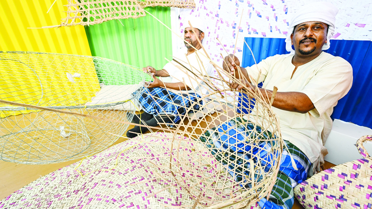 على الممشى الخاص بمباني حي الشندغة التاريخي المطل على خور دبي، يقدم مهرجان «أيام الشندغة»، الذي انطلق أول من أمس، حكاية دبي مع البحر والصيد، وكيف صاغت الأيادي الإماراتية كل معدات هذه المهنة من البيئة المحلية، خصوصاً من شجر النخيل.