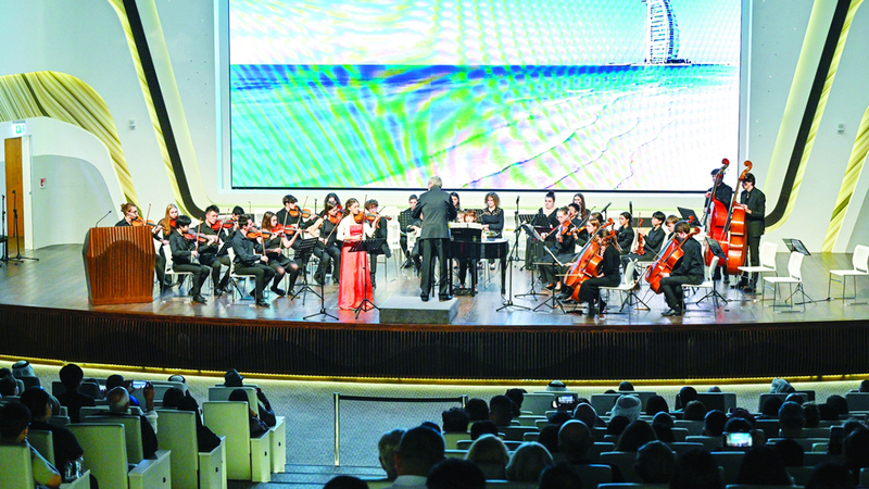 خلال حفل «أوركسترا الإمارات السيمفونية» بمشاركة عازفين من حول العالم