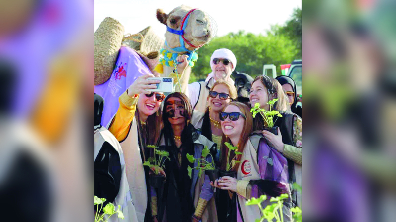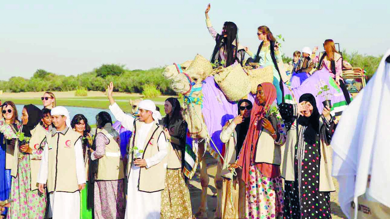 وشهدت المسيرة توزيع الغرس الأخضر، سيراً على خُطى الأب المؤسس المغفور له الشيخ زايد بن سلطان آل نهيان، طيب الله ثراه.