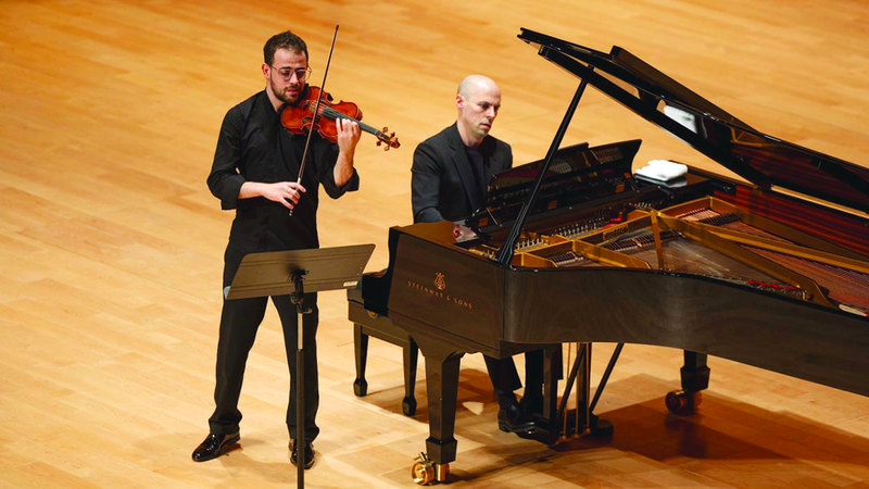 أسر عازف الكمان يامن سعدي، يرافقه عازف البيانو الشهير جوليان كوينتين، جمهور مهرجان أبوظبي بأدائهما الساحر، في العرض الأول في العالم العربي، الذي أقيم على خشبة المسرح الأحمر في مركز الفنون بجامعة نيويورك أبوظبي، الثلاثاء الماضي.