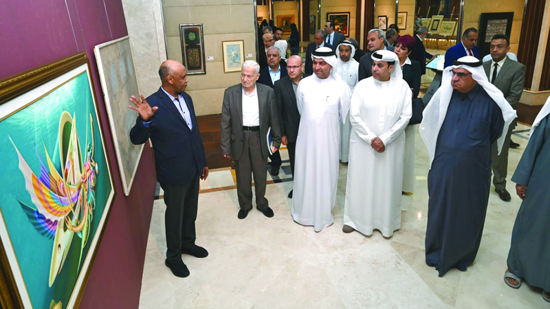 خلال افتتاح معرض «فسحة الجمال ونزهة الخيال» في مؤسسة العويس. من المصدر