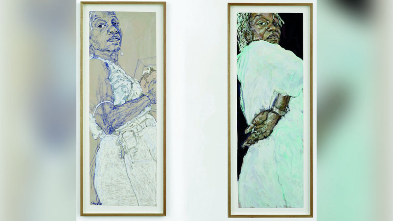 تجلّى معرض «الزمن مرسوماً: ثنائيات» بعد اقتناء أعمال جديدة للفنانة كلاوديت جونسون، التي تعد من أبرز الشخصيات في حركة الفنون السوداء في بريطانيا بالثمانينات، إذ اعتبرت صورها السياسية المركبة شكلاً من أشكال الرسم، بغض النظر عن مخططها أو سطحها أو الوسيط المستخدم فيها، واختير عرض عملين من سلسلة الفنانة «أشكال واقفة» (2021)، وهي بورتريهات بالحجم الطبيعي تبدو للوهلة الأولى أنها بورتريهات شخصية لجونسون، لكنها في الواقع عبارة عن أجسام مزدوجة، ونماذج بديلة، وأشكال متراصة، وبقايا من الواقع اليومي وأحلام اليقظة اليومية.