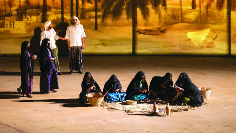 وتحت عنوان «أثر الأوّلين»، ندخل الفصل الثالث في حكاية الدولة، مع بداية التجارة في الإمارات وكيف ازدهرت من خلال النخلة، ونشاهد في لوحة يدخل فيها الجِمال إلى المسرح هذه الحقبة، وكيف كانت النخلة داعمة للحياة، ورمزاً يجمع الإماراتيين ويوحدهم، ونشاهد كيفية استخدام النخلة وموادها الخام في بناء العريش وصنع الأدوات المنزلية المتنوعة، ومنها أدوات المائدة وأغراض الزينة.