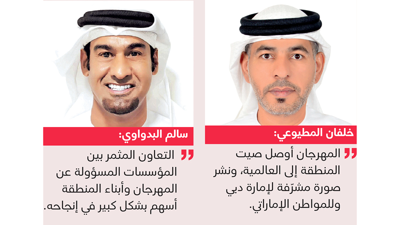 وأضاف أنه مع تدفق السياح وتوافد الأشخاص من داخل الدولة وخارجها بشكل لم يكن متوقعاً، أحدث المهرجان انتعاشاً في الأنشطة التجارية وأوصل صيت المنطقة إلى العالمية فقد تكاتف المجتمع في نشر صورة مشرفة لإمارة دبي وللمواطن الإماراتي المتمسك بعراقته وأصالته.