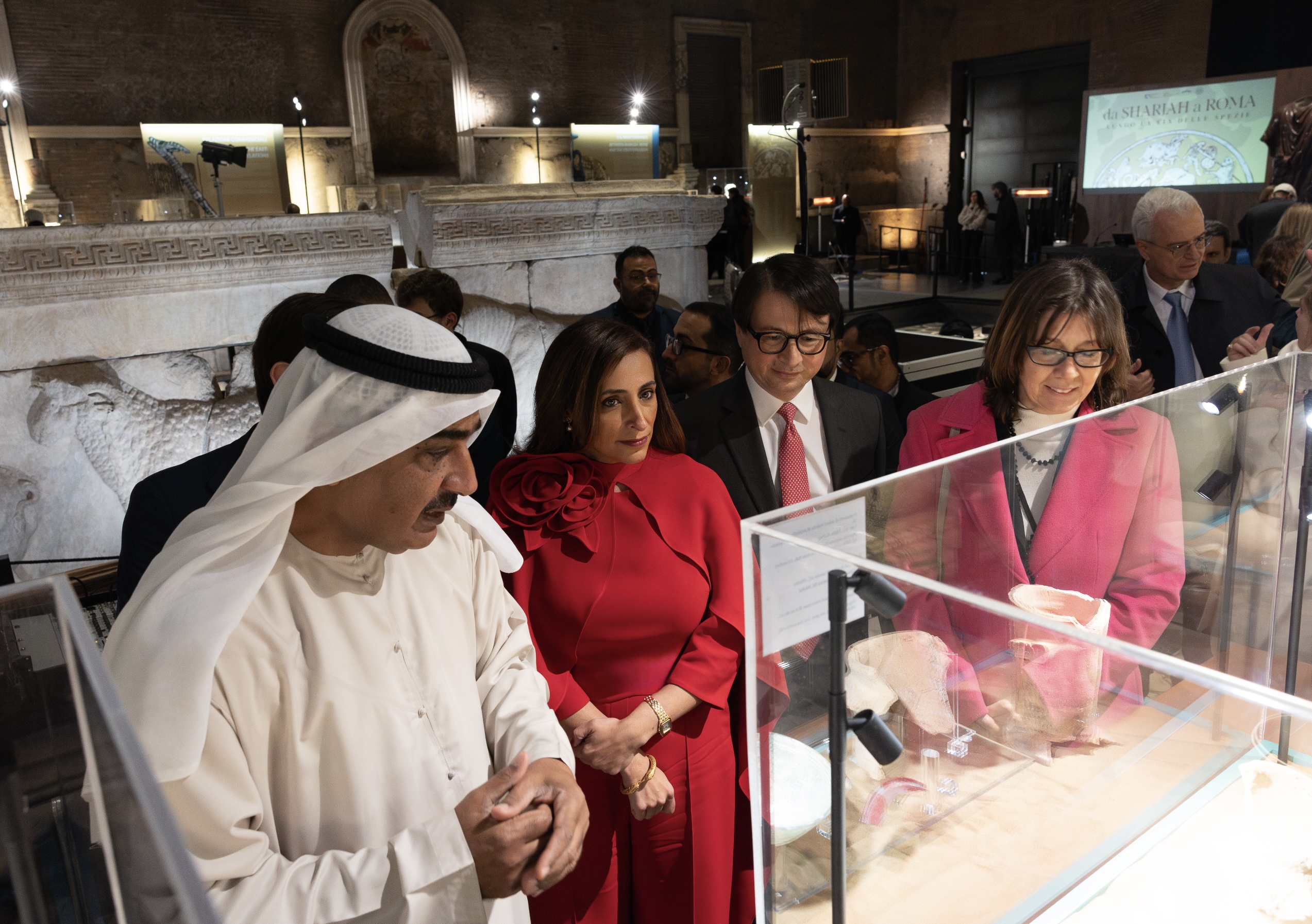 بدور القاسمي تفتتح في روما معرضاً لـ 110 قطعة أثرية نادرة تكشف دور الشارقة في شبكة التجارة العالمية القديمة