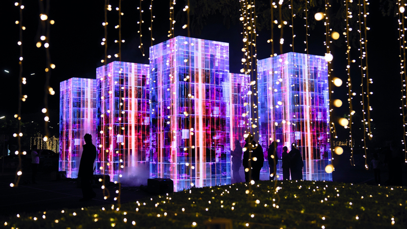 يعود مهرجان أضواء الشارقة ليبهر الجمهور مرة أخرى، خلال فعاليات دورته الـ14، التي شملت حتى الآن 12 من المواقع المختلفة في إمارة الشارقة، مثل: مجمع الشارقة للبحوث والتكنولوجيا والابتكار، و«رحلة نور المعرفة والثقافة» على جدران مسجد الشارقة، بجانب عرض «تألق بيئي» في ممشى واجهة المجاز المائية، وعرض «مدارات الحوار» التي تضيء الكثبان الرملية لشاطئ الحيرة، بينما يجمع العمل الفني «نكسوس دريم» في شاطئ الحمرية بين الفن والعلم والفلسفة، إضافة إلى العرض الفني التركيبي «ظلال الابتكار» في مقر مجموعة بيئة، وعرض «أعمدة الوحدة»، في حديقة الجادة.