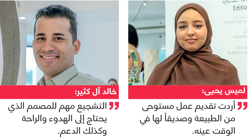 كما فاز المهندس المعماري والمصمم، خالد آل كثير، بمركز الوصيف عن تصميم «بدون بداية»، مشيراً إلى أنه حاول تقديم مفهوم الريح الذي يرمز إلى الحرية من خلال تصميم الإضاءة المنفذ على شكل الرياح، وتقديمه من «الفايبر غلاس» المغطى بالرمل، لإبراز تأثير الرياح في الرمال والصخور، وأشار إلى أن العمل نفذ يدوياً، وبعيداً عن الطباعة الثلاثية الأبعاد، واستغرق منه ما يقارب 17 يوماً في التنفيذ. وأكد آل كثير أن المسابقة مهمة في دعم المصممين في الشرق الأوسط، إذ تمنحهم الفرصة لإبراز أعمالهم، مشدداً على أن التشجيع مهم جداً للمصمم الذي يحتاج إلى الهدوء والراحة، وكذلك الدعم المادي من أجل إنتاج أعماله، مبيناً أنه كمعماري ومصمم يسعى إلى التوجه للطبيعة في المواد التي يستخدمها بهدف الاستدامة في الفن.