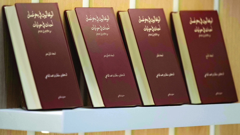 ووقّع صاحب السمو حاكم الشارقة أحدث إصداراته «البرتغاليون في بحر عُمان أحداث في حوليات من 1497م إلى 1757م»، الذي يضم 21 مجلداً باللغة العربية، ومثلها باللغة الإنجليزية، وتراوح صفحات المجلد الواحد منها بين 400 و600 صفحة، بمجموع كلي يصل إلى 10 آلاف و500 صفحة، ويحوي كل مجلد مجموعة من الوثائق والرسائل، حيث بلغ مجموع الوثائق في الحولية 1138 وثيقة، جُمعت من جميع مراكز الوثائق في العالم.