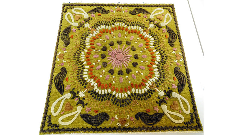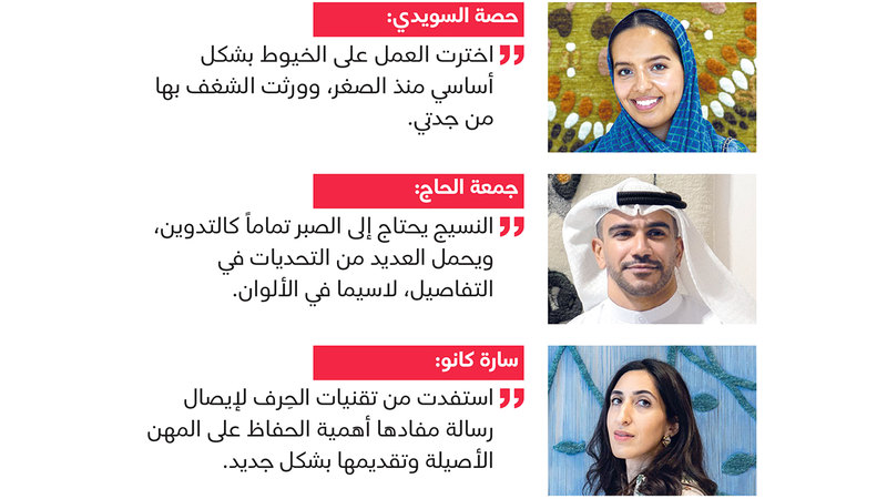 بينما يقدم الفنان الإماراتي، جمعة الحاج، في المعرض فكرة التدوين وتوثيق القصص اليومية من خلال نسجها على السجاد.