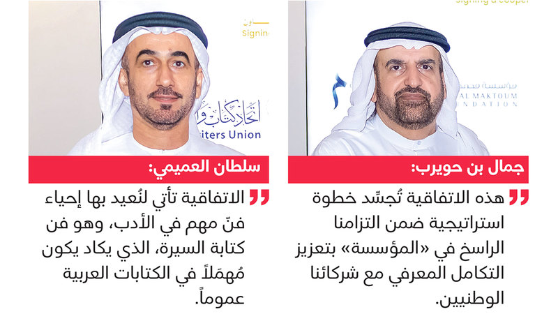 وقال الدكتور سلطان العميمي: «تأتي الاتفاقية لنُعيد بها إحياء فنّ مهم في الأدب، وهو فن كتابة السيرة، الذي يكاد يكون مُهمَلاً في الكتابات العربية عموماً، ويشهد نقصاً واضحاً في الكتابة المحلية».