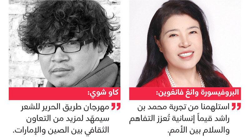 كما اختار المنتدى مدينة دبي لاستضافة النسخة الخامسة من مهرجان طريق الحرير الدولي للشعر التي انطلقت أول من أمس، وتستمر حتى 29 الجاري، وذلك كأول مدينة عربية تستضيف هذا الحدث المرموق، وستحتضن مكتبة محمد بن راشد حفل توزيع جوائز المهرجان بعد غد، بمشاركة نحو 50 شاعراً وفناناً ورساماً، سيزورون عدداً من الأماكن السياحية والثقافية في مدينة دبي ودولة الإمارات، كما ستتولى تغطية المهرجان 20 وسيلة إعلامية صينية من بينها صحيفة الشعب اليومية التي تعد من أكبر وسائل الإعلام في الصين.