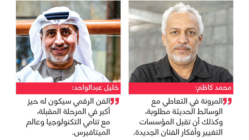 من جهته، أشار الفنان خليل عبدالواحد إلى ظهور مصطلحات جديدة في الفن، ومنها الـ«إن إف تي» والميتافيرس، وغيرهما من المصطلحات التي تُبرز التحول في الفن الرقمي، مضيفاً أن دبي تميّزت باستقطاب أنواع متباينة من الفنون والمبدعين، وتنظيم الفعاليات التي خصصت مساحة لعرض الأعمال الرقمية.