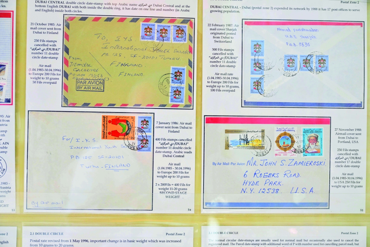 وأوضح أن مجموعته تغطي الفترة الممتدة منذ تأسيس بريد دبي، وكيف مرّ بالعديد من الإدارات، بدءاً من الإدارة الهندية، مروراً بالباكستانية لفترة وجيزة، ثم الإدارة البريطانية، ثم الإدارة المستقلة (عام 1963)، مشيراً إلى أنها تحتوي على عدد من الطوابع النادرة وبعض الأظرف المختلفة.