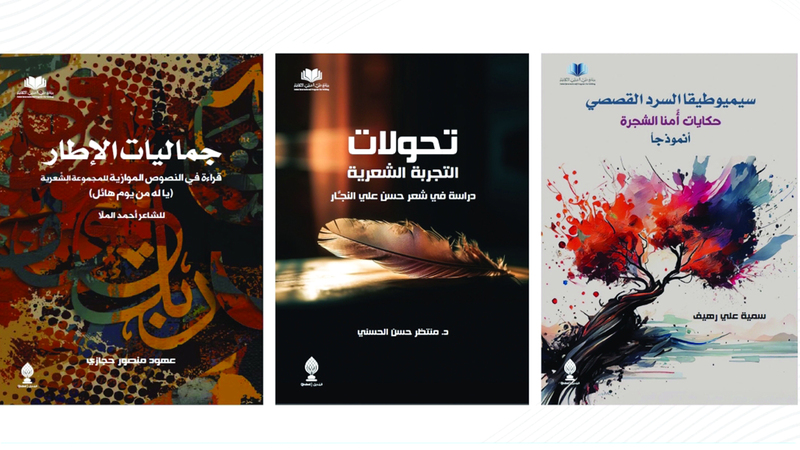 أما كتاب «جماليات الإطار»، لعهود منصور حجازي، فهو إصدار نقدي متميز يناقش تأثير الإطارات في جمال الصورة وتبيين تفاصيلها ومواءمتها مع الفضاء الذي تسكنه، حيث ترى الكاتبة أن النصوص، مثل الصور، لا تنفك عن ارتباطها بمتعلقاتها التي تحفل بالمعاني الخفية عند تفكيك رموزها، وتطبق الناقدة أفكارها على مجموعة الشاعر أحمد الملّا الموسومة «يا له من يوم هائل»، لتحلل التداخل الحاصل في اللوحة الفنية التي شكّلتها نصوص شعرية متميزة ورسومات لفنانة تشكيلية عميقة ومرهفة.