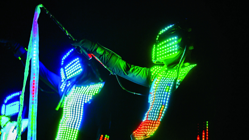 واعتمدت اللوحات الحركية في العرض على الإضاءة كعنصر جوهري، إذ ارتدى أعضاء الفرقة الأربعة بدلات مزوّدة بشرائط LED مدمجة في الخوذة والصدر والأطراف، يتم التحكم بها لاسلكياً لتبديل الألوان بما ينسجم مع الموسيقى الحية.