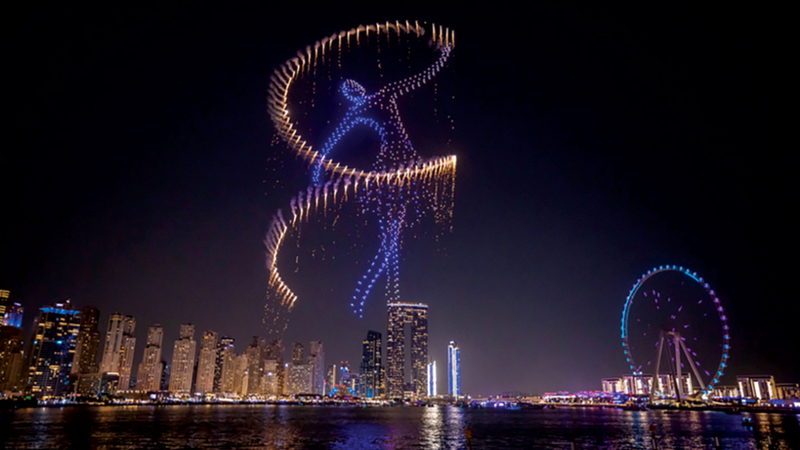 عروض طائرات الدرون في مهرجان دبي للتسوق، وتقدمها مؤسسة الإمارات العامة للبترول «إمارات» (5 ديسمبر - 11 يناير) من خلال عرضين مسائيين يقدمان مجاناً في «بلوواترز»، و«ذا بييتش» مقابل جميرا بيتش ريزيدنس، ويتضمنان عرض طائرات الدرون المزودة بالألعاب النارية، وهو أكبر عرض جوي في تاريخ مهرجان دبي للتسوق.