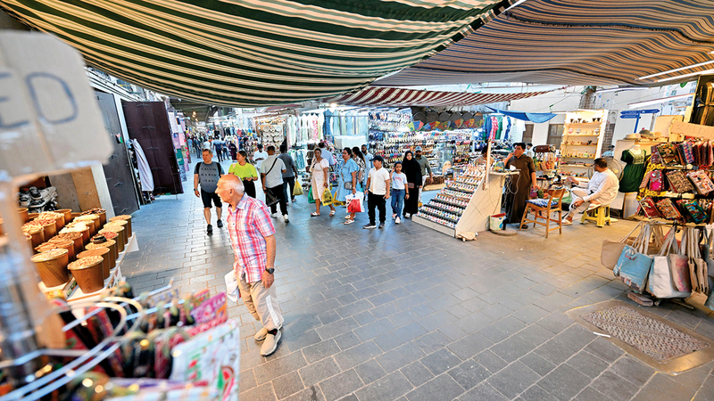 ومع اقتراب الزائر من محال الذهب والمجوهرات تتلألأ الحلي والأساور في الواجهات، لتذكّره بأن السوق الكبير كان مركزاً لتجارة الذهب منذ عقود طويلة، الزوّار من مختلف الجنسيات يتجولون جنباً إلى جنب مع المواطنين والمقيمين، ويتبادلون الحديث والمساومة، تماماً كما كانت الحال منذ بدايات القرن الـ20، ليبقى السوق مساحة للتعايش الاجتماعي والتفاعل بين الثقافات.