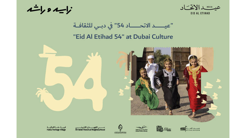 تجارب استثنائية وعروض فنية وترفيهية مستلهَمة من التراث المحلي، تقدّمها هيئة الثقافة والفنون في دبي، لزوار أصولها والمواقع التابعة لها، احتفالاً بعيد الاتحاد الـ54 الذي يُقام هذا العام تحت شعار «متحدين».